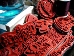 deeply etched red rubber stamps